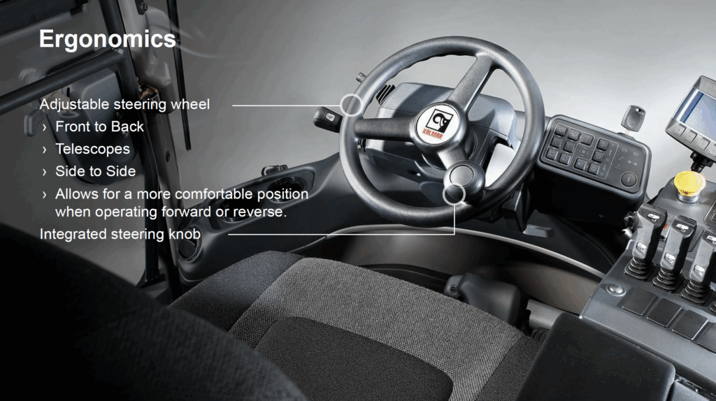 Digitální řídicí jednotka zobrazuje klíčové provozní údaje i chybové hlášky přímo na displeji, což zkracuje servisní zásahy a minimalizuje prostoje. Díky telematice Kalmar Insight lze sledovat stav flotily v reálném čase, plánovat údržbu a optimalizovat využití strojů.