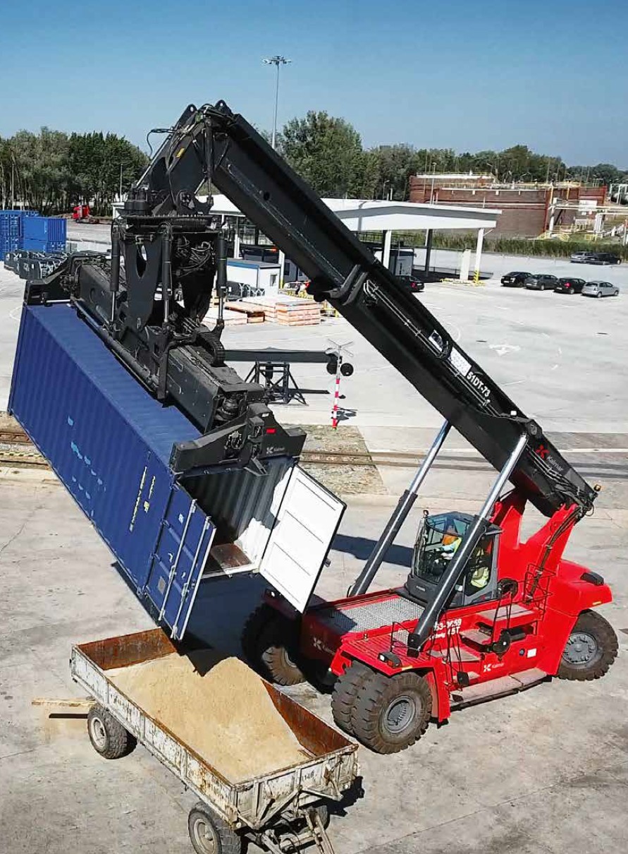 je špičkový kontejnerový překladač (reachstacker), který spojuje nosnost až 70 tun, výraznou úsporu paliva a snížení emisí s plnou produktivitou. Tento stroj je navržen pro intermodální terminály, přístavy a průmyslové aplikace, kde je klíčová spolehlivost, nízké TCO a ekologická efektivita. Ve srovnání s běžnými reachstackery snižuje spotřebu paliva až o 40 % oproti starším strojům a o 25 % oproti novějším modelům, a to bez ztráty výkonu.