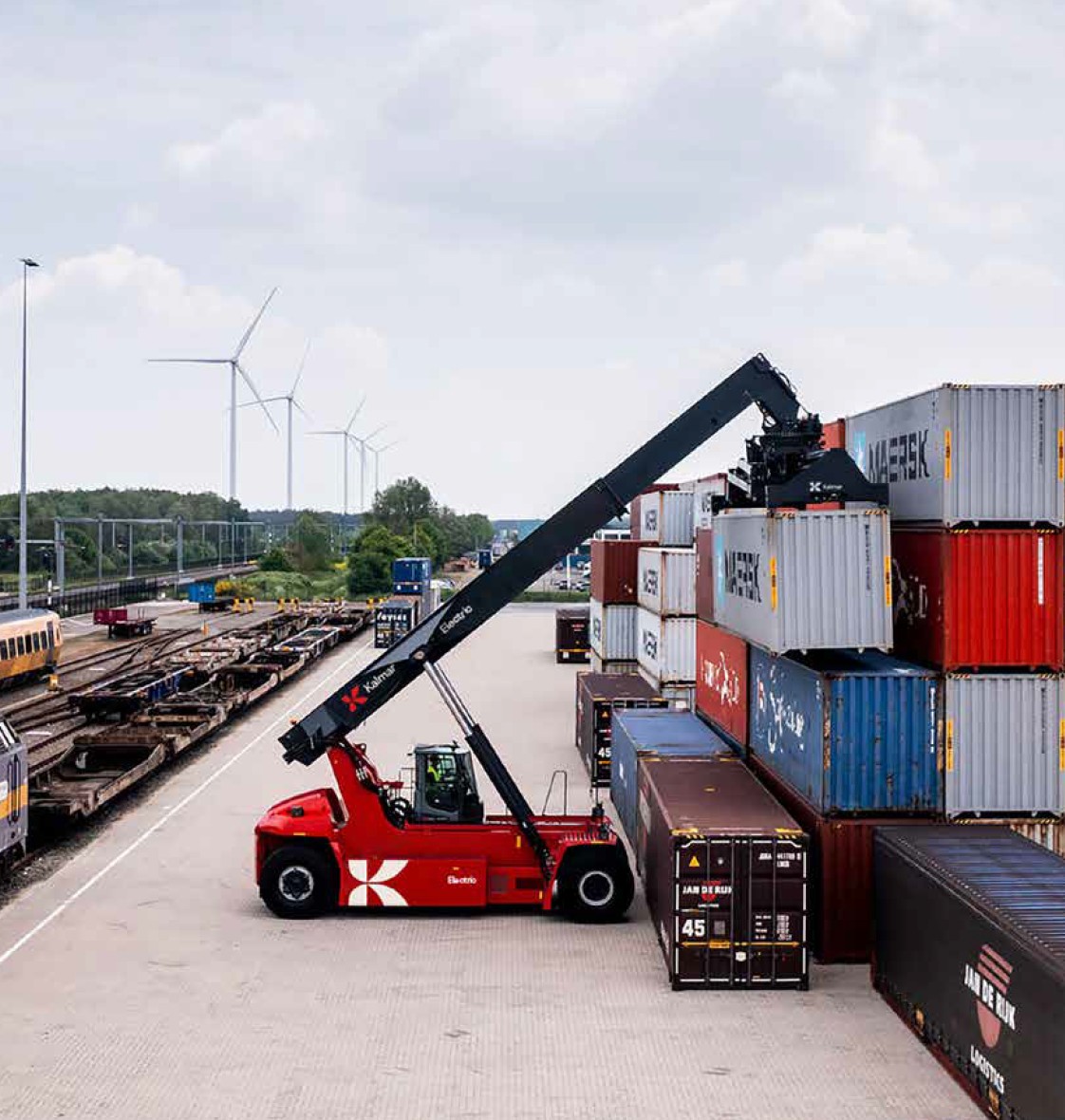 Kalmar ERG420–450 je navržen jako nejvíce udržitelný reachstacker v historii značky – díky použití „green steel“ při výrobě a inovativnímu protizávaží s nízkou uhlíkovou stopou. Přes systém Kalmar Insight lze navíc sledovat využití stroje, stav baterie i provozní data v reálném čase.