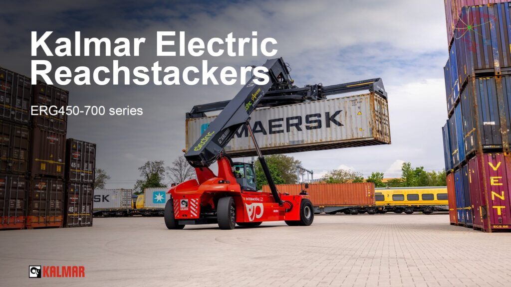 Kalmar ERG450–700 = elektrický reachstacker řady Electric Super Gloria, s nosností 45 tun – 70 tun. Nulové emise, vysoký výkon a modulární bateriové řešení. Udržitelná volba pro přístavy, intermodální terminály a těžký průmysl.