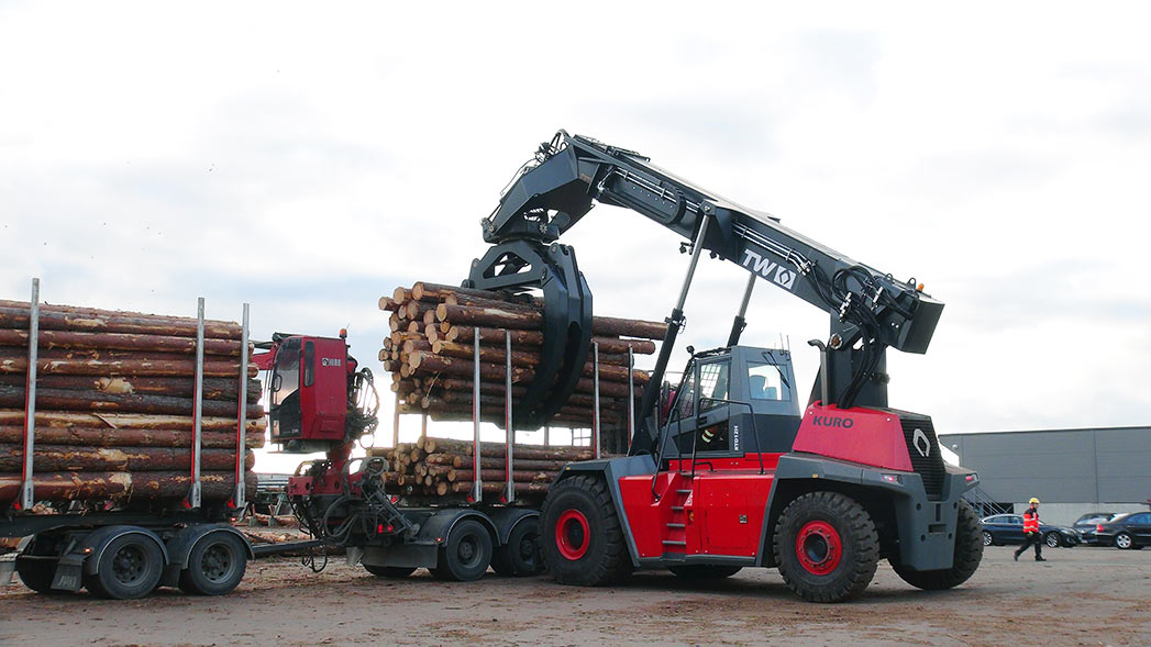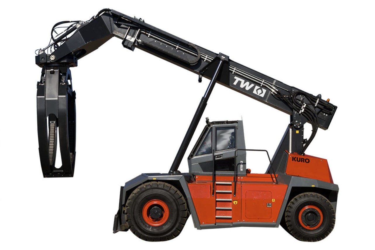 RTD12 KURO = překladač kulatiny (logstacker) nové generace, jenž přináší vyšší výkon, vyšší komfort, nižší spotřebu a nižší TCO než jakýkoli tradiční kolový nakladač ve stejném nasazení. Ideální pro pily, kde se počítá rychlost cyklu, výška stohu i úspora paliva.