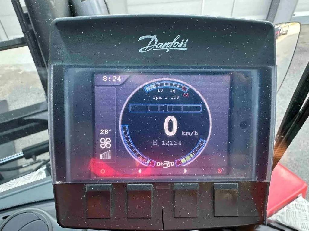 Kabina a ergonomie | Komfortní kabina uzavřená + topení + klimatizace | Další výbava: tónovaná skla; vzduchem odpružené sedadlo Grammer; rádio (Bluetooth / USB); centrální mazací systém; elektronická indikace zatížení | Osvětlení: Pracovní světla vpředu i vzadu, LED