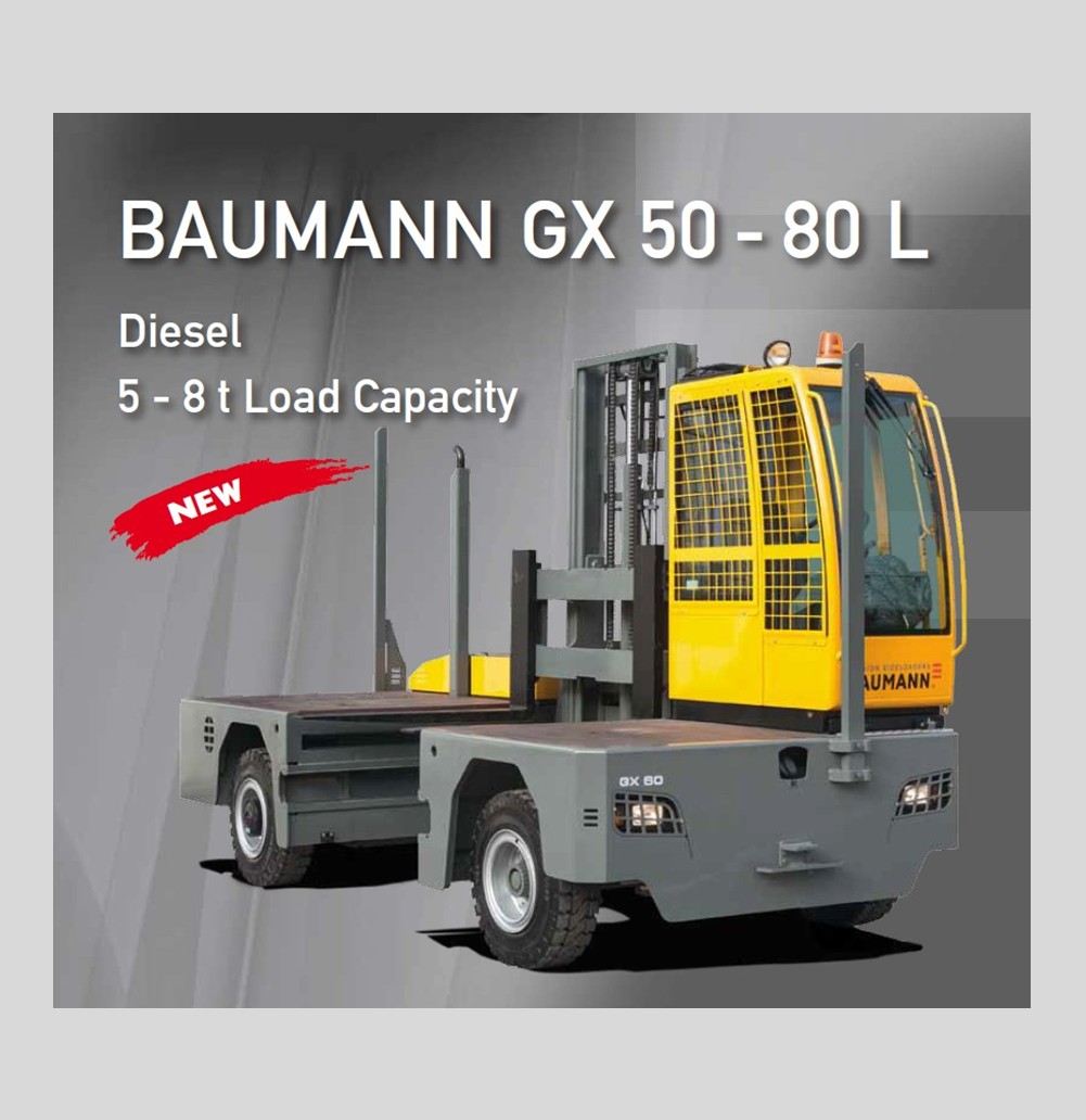 Brožura Baumann GX50–80L představuje robustní boční vysokozdvižné vozíky určené pro manipulaci s dlouhými, objemnými a těžkými materiály. Nabízí vysokou stabilitu, 4bodové hydraulické vyrovnávání rámu, speciální stožáry s optimalizovanými profily a moderní ergonomickou kabinu. Tyto stroje jsou ideální pro manipulaci ve dřevozpracujícím průmyslu, hutích, stavební výrobě a u nadrozměrných břemen.
